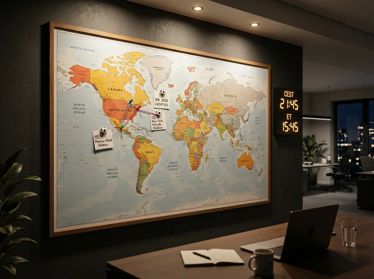 104 wedstrijden. 39 dagen. Drie landen. Zes tijdzones. Het WK 2026 speelschema is het meest complexe programma in de geschiedenis van het voetbal, en voor Belgische fans komt er een laag bovenop die nergens in de officiële FIFA-communicatie staat: het tijdsverschil. Wanneer in New York de aftrap klinkt om 21:00 lokale tijd, is het in Brussel 03:00 ’s nachts. Die ene zin bepaalt hoe miljoenen Europese fans dit toernooi zullen beleven — en het bepaalt wanneer jij je wekker zet, je verlof inplant of je avondplannen aanpast.