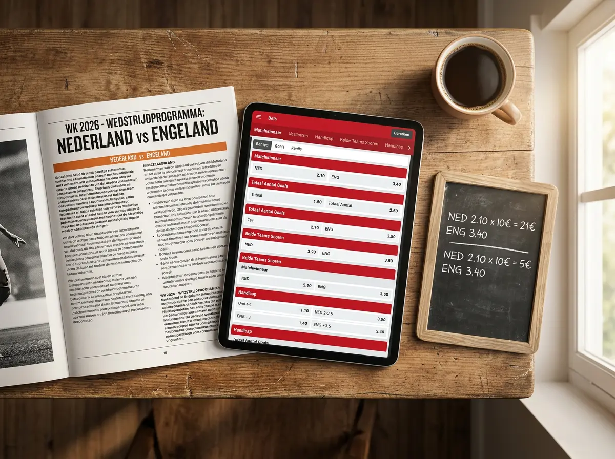 Op het WK 2022 zette een kennis van me twintig euro op “Argentinië wint het toernooi” tegen een quotering van 5.50. Mooi rendement, maar hij liet de tientallen andere markten volledig links liggen — van het exacte aantal doelpunten per wedstrijd tot de eerste doelpuntenmaker in de finale. Het WK 2026 brengt 104 wedstrijden over 39 speeldagen, en bij elke wedstrijd bieden vergunde Belgische aanbieders tientallen soorten weddenschappen aan. Wie alleen de uitslag van een wedstrijd voorspelt, benut misschien tien procent van de beschikbare mogelijkheden. In dit artikel leg ik de belangrijkste WK-weddenschappen naast elkaar — hoe ze werken, wanneer ze interessant zijn en waar de risico’s liggen.
